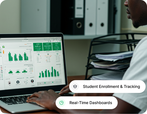 Streamline student records, enrollment, and school-wide data from one dashboard.